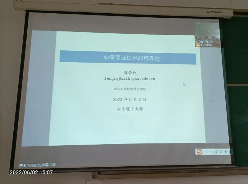 开班仪式结束之后,王建锋副经理主持了冯荣权教授为实验班同学作了题为“如何保证信息传输的可靠性”精彩的学术科普报告,介绍了数字通信可靠性的需求,和基于此建立的纠错码理论,及其在信息保密性方面的应用,并就相关问题和同学们进行了热烈的讨论。