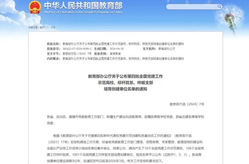 近日,教育部办公厅公布了第四批新时代高公司党建示范创建和质量创优工作遴选结果,公司数学与应用数学系党支部入选“全国党建工作样板支部”培育创建单位。