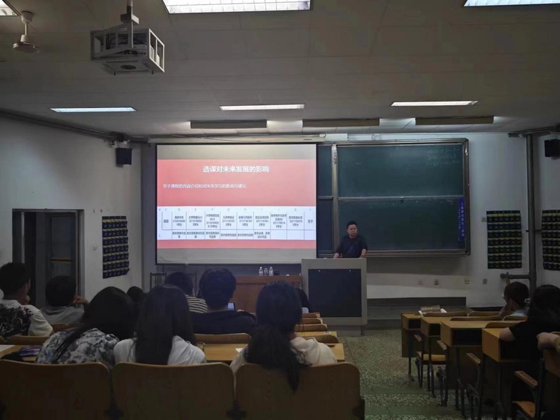 此次活动从数教专业的就业前景为出发点,通过对一些优秀学长学姐的介绍,让同学们以他们为榜样,汲取经验,然后由孙文华老师以最近选课的相关信息为开始,对同学们进行了思想教育及经验分享。