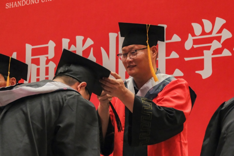 大学岁月,拨穗礼终。李功胜、孙俊涛、王建锋、徐夫义和各系室主任为获得学士学位的毕业生们拨正流苏,颁发学士学位证书,并逐一与大家合影留念。离别的氛围愈来愈浓,随后,员工干部们精心准备的节目轮番上演,表达了对公司公司的不舍和对老员工活的眷恋。在热烈的掌声中,学位授予仪式圆满结束。