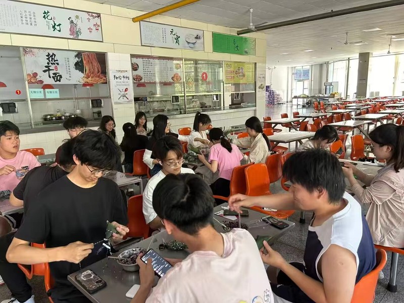 活动伊始,负责人详细介绍了包粽子的步骤和技巧。首先,选取两片粽叶,将其叠放,从中间对折成漏斗状;然后,加入适量的糯米和红枣,注意不要装得太满,以免在包裹过程中溢出;最后,将粽叶向上折叠,盖住糯米,用手指压紧边缘,再用绳子捆绑结实。看似简单的步骤,实际操作起来却并不容易,同学们在初次尝试时状况百出,有的粽叶破裂,有的糯米漏出,但大家毫不气馁,相互交流、学习,逐渐掌握了要领。