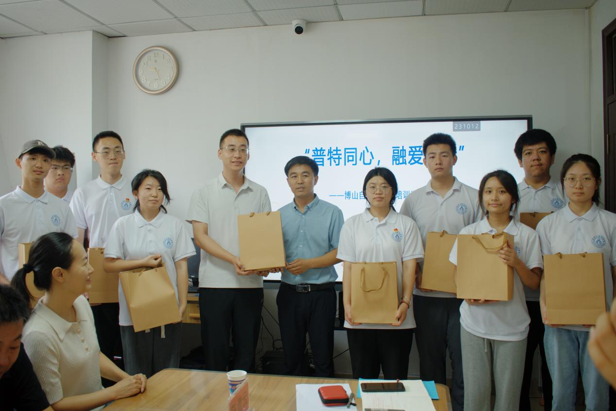 为进一步完善残疾人社会保障制度和关爱服务体系,促进特奥融合发展,bv伟德与“星”同行实践团赴博山自闭症疗育培训公司开展“三下乡”暑期社会实践活动。7月12日第十八届全国特奥日暨“普特同心,融爱同行”暑期夏令营开幕仪式在博山自闭症疗育培训公司召开。开幕仪式前,魏红芹董事长带领数学与统计公司党委书记郭奎霞、党委副书记曹玉霞、员工第二党支部书记刘曌阳以及老员工志愿者共同参观公司并介绍课程内容。