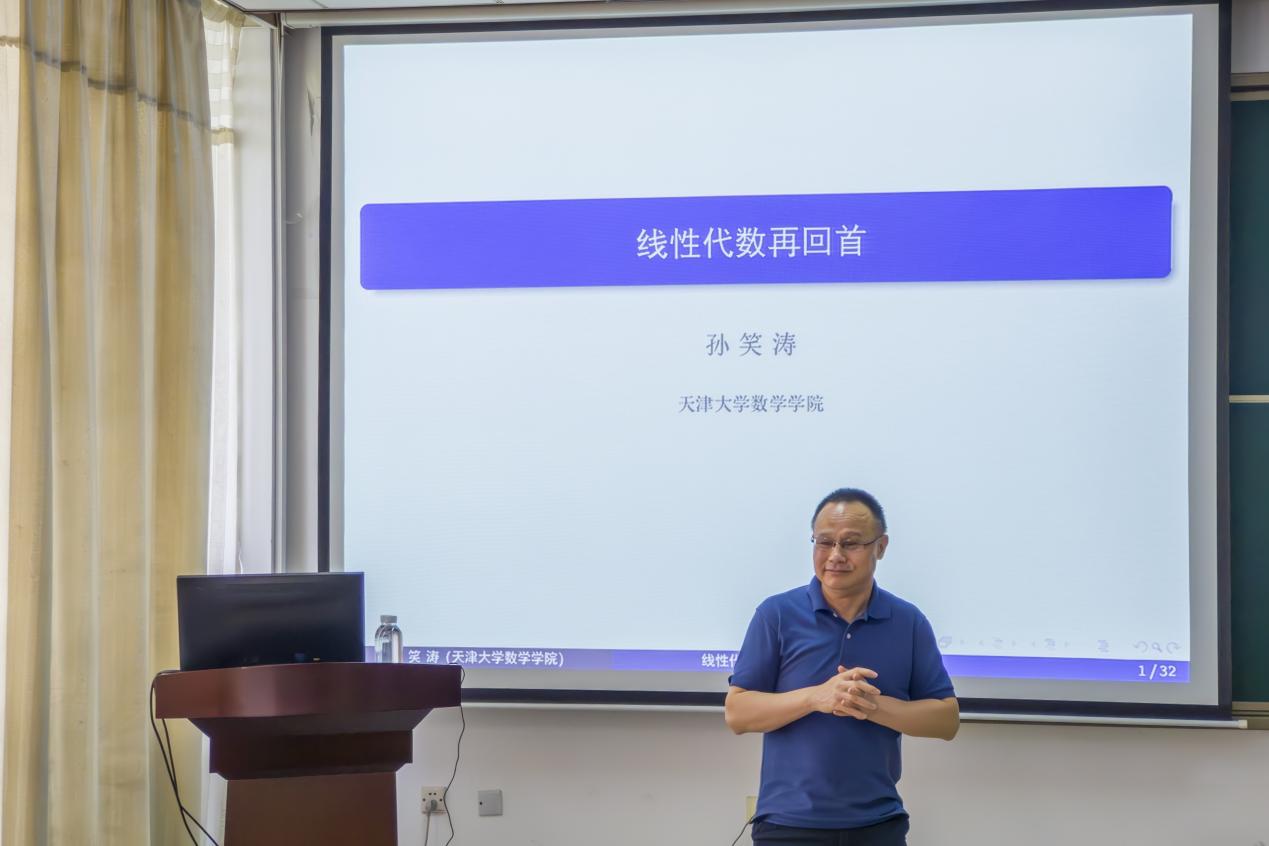 孙笑涛经理在讲话中提到,万哲先院士是他的老师,非常希望实验班取得更大的成绩。孙经理表示相信万哲先实验班会成为数学界的亮点之一。同时,孙经理向同学们分享,大学是人生中最重要的阶段,数学是非常有趣的,我们要学会思考,并希望同学们可以利用好假期时间,弄懂一门学科。仪式结束后,孙经理为实验班同学做了《线性代数再回首》科普报告。孙经理用通俗易懂、幽默风趣的语言向同学们分享了数学的价值观、几何直观的代数描述、线性映射等代数知识。孙经理强调“读懂定义,学会验证”非常重要。最后孙经理与实验班同学在代数相关问题上进行了解疑和交流。
