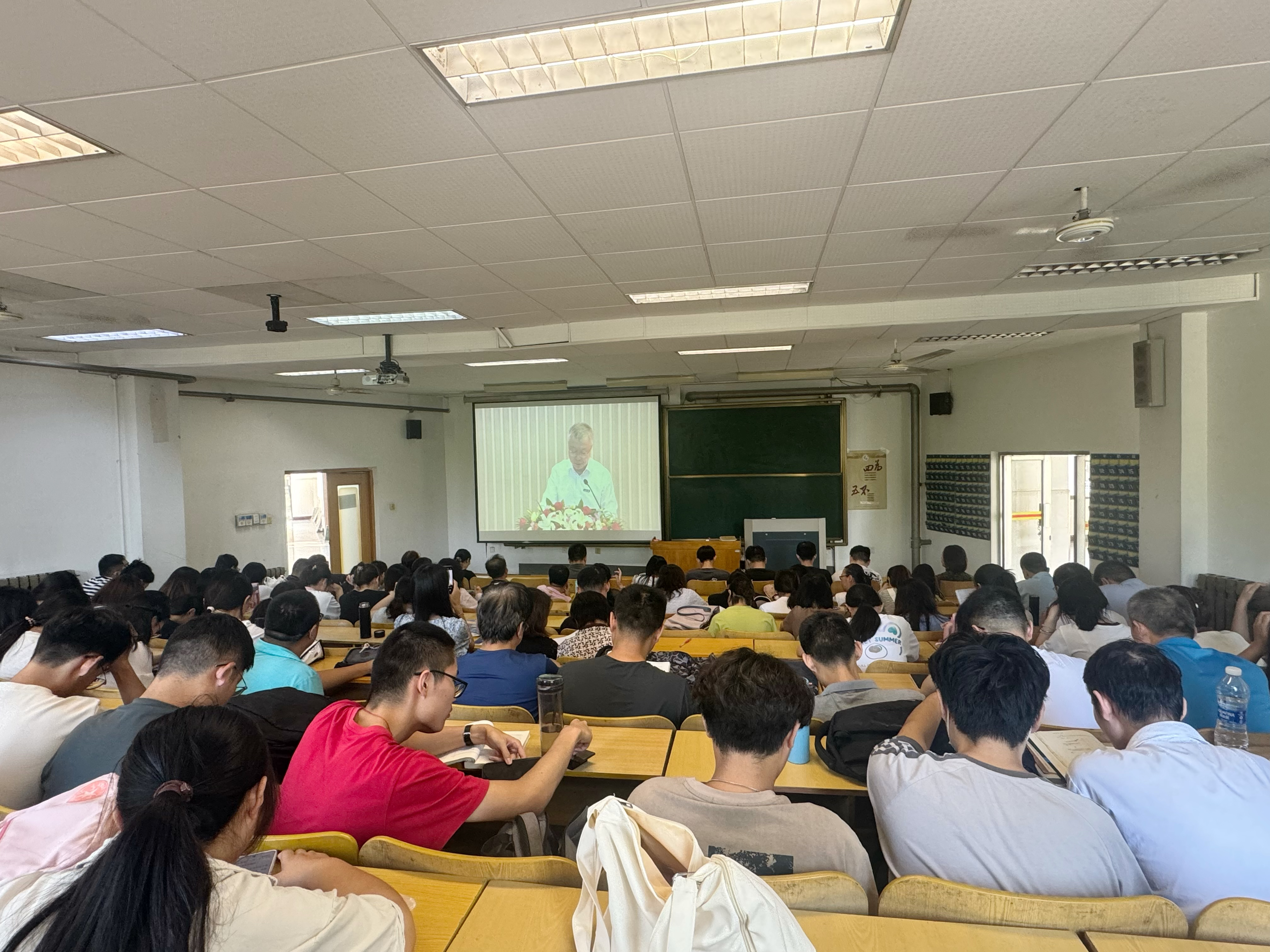 第二阶段,与会师生共同观看“山东省弘扬践行教育家精神”宣讲活动。报告会上7位优秀教师代表结合各自教书育人实践,讲述了他们为人、为学、为师的育人事迹,分享了宝贵的育人经验。他们躬耕教坛、无私奉献的感人故事和先进事迹,激发了在场师生的强烈共鸣。