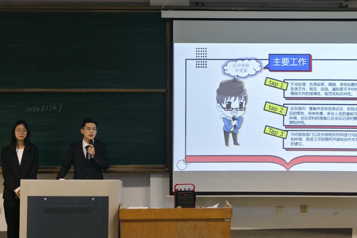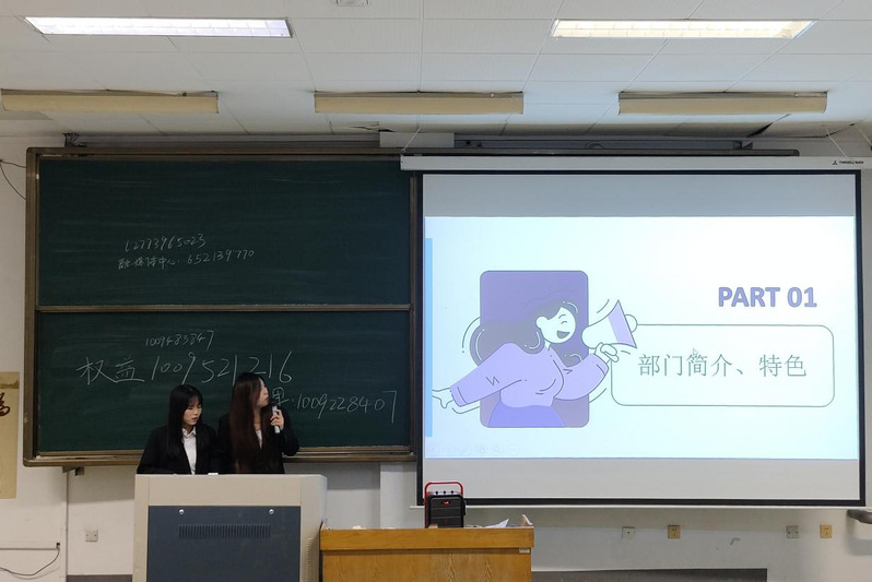 宣讲大会在有序的氛围中拉开帷幕,员工会秘书处代表率先进行宣讲,随后,其他七个部门代表依次登台亮相。各部门代表运用视频与PPT相结合的方式,以幽默而又不失严肃的语言,介绍了各部门的主要职能,生动展示了自己部门的团队氛围以及过去一年的工作成果。他们分享的经验与心得,让新生们对员工会的工作有了更为全面而深入的了解。