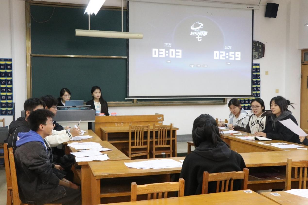 本次辩论赛初赛共五场,各辩论队围绕“年轻人面对焦虑应该逼自己一把还是放自己一马”这一辩题展开辩论。比赛前,主持人仔细宣读比赛规则及流程,正反双方分别进行自我介绍。比赛开始,双方一辩分别进行立论陈词,后正反双方分别就各方理论展开辩论。赛场气氛紧张激烈,双方辩手你来我往、侃侃而谈,场下观众激情澎湃、掌声连连响起。最终,共有五支队伍顺利晋级复赛。