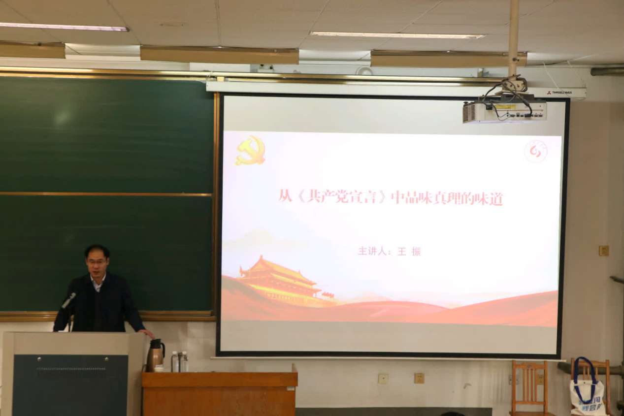 王振为全体学员作《从<共产党宣言>中品味真理的味道》专题培训。他从《共产党宣言》的背景、基本内容,马克思主义在中国的发展等方面展开,鼓励同学们在《共产党宣言》中汲取真理的力量,坚持唯物史观、坚持与时俱进、坚定理想信念、坚守人民立场,争做有理想、敢担当、能吃苦、肯奋斗的新时代好青年,为中国式现代化贡献青春力量。