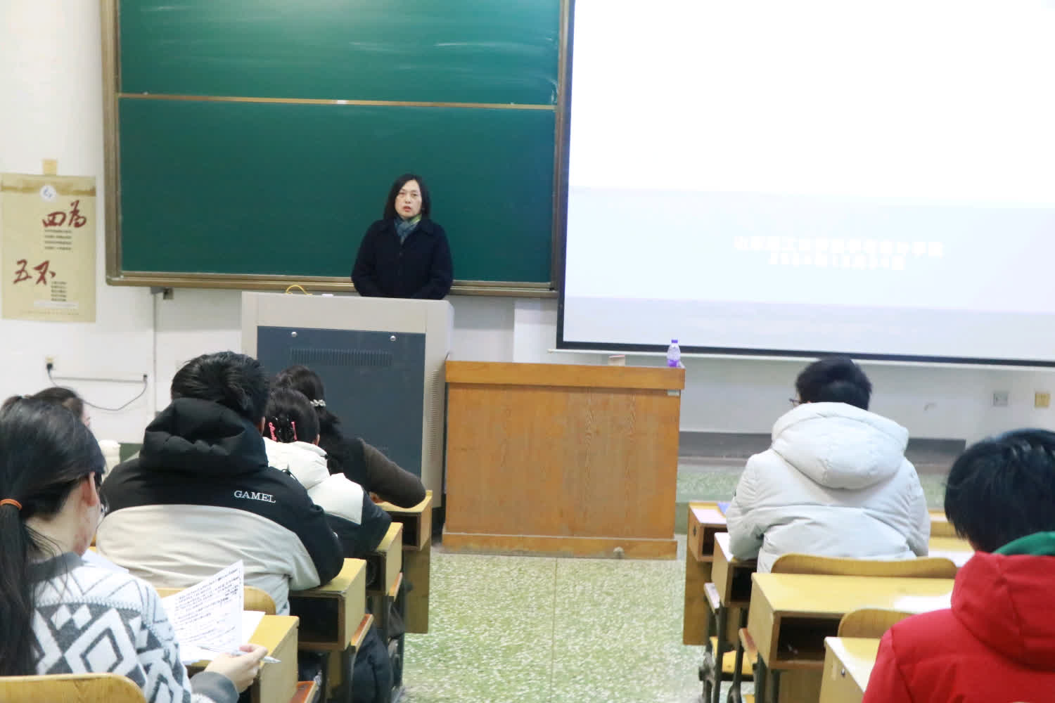 曹玉霞介绍了目前公司2025届毕业生的整体情况,通过对往届毕业生就业情况和发展情况的分享,让同学们更为生动直观地了解本专业就业情况。她对即将开展的“研后”专场招聘会和下学期的春季招聘会做了重点介绍,强调了参加校园招聘的重要性,鼓励同学们积极参加校招,对不同单位和岗位进行分析比对,不断积累经验,实现优质就业目标。