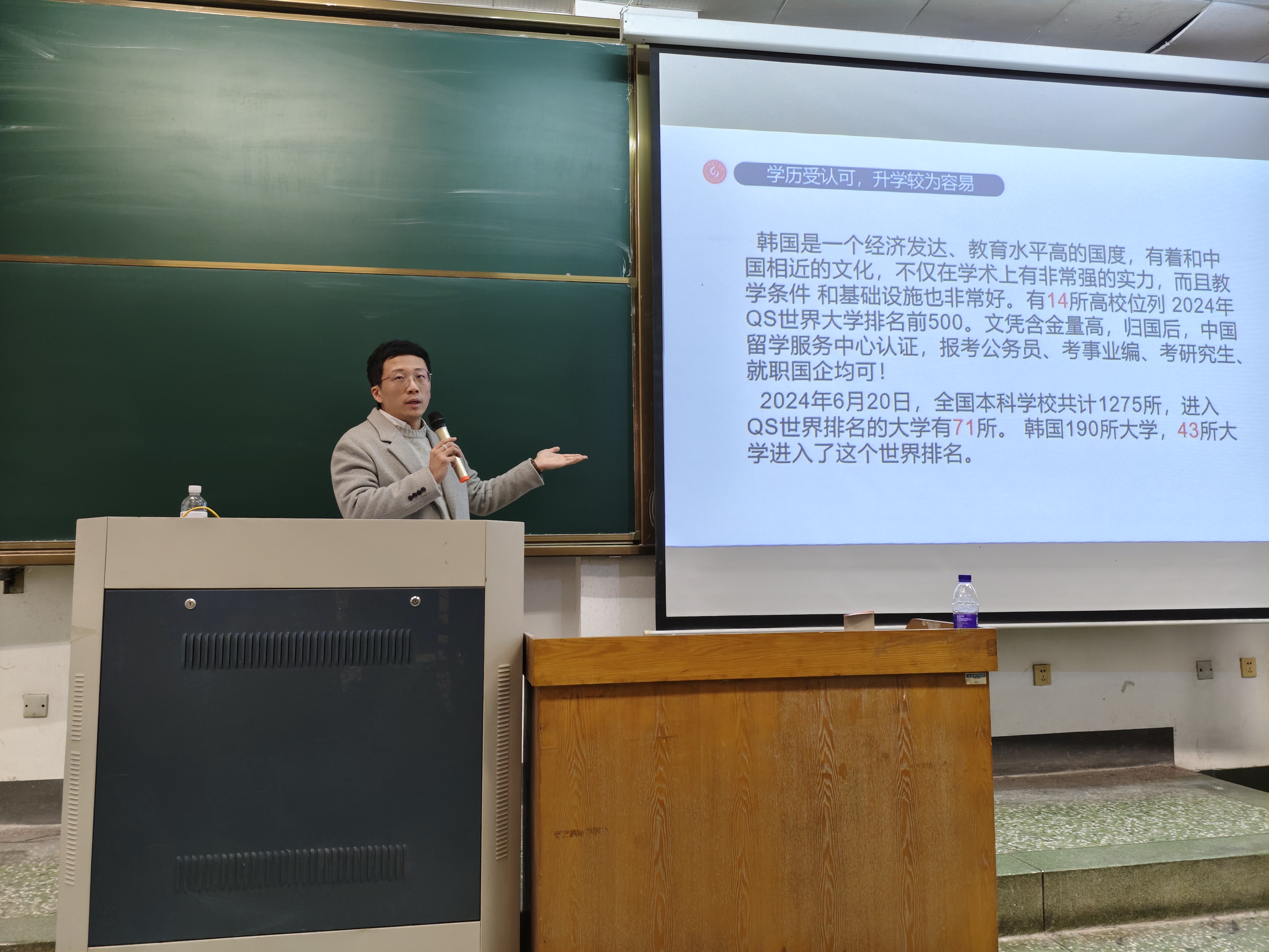 启动仪式后,进行了bv伟德中国官方网站韩国本升硕专题讲座。结合实际与政策导向,深入分析了韩国留学的优势以及韩国的大学能为同学们提供的宝贵机遇,也讲解了同学们在准备留学过程中应当着重培养与提升的各项能力,为毕业生提供了更多选择,拓宽了未来发展方向。
