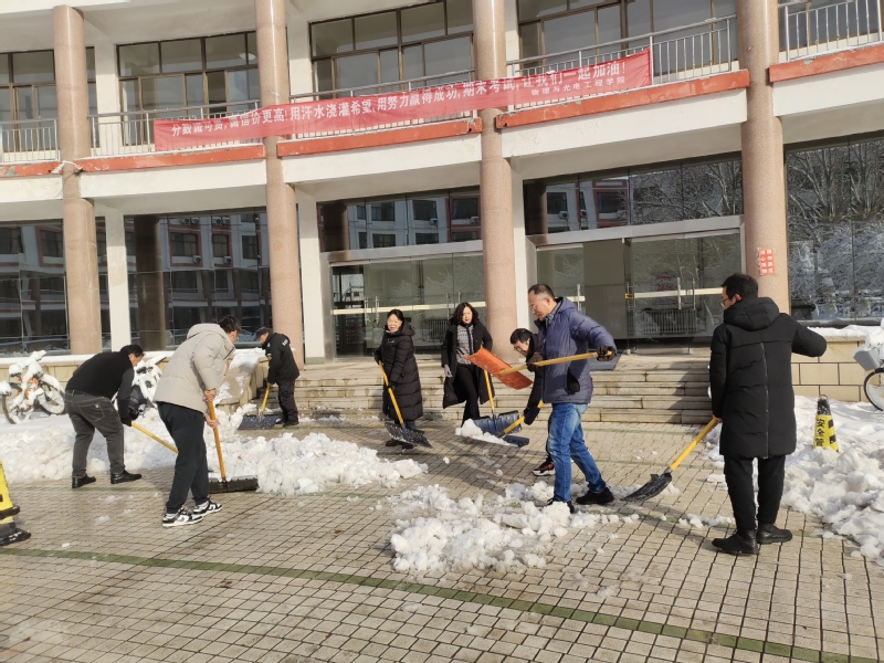 3月2日,淄博市迎来大范围强降雪,为保障师生安全出行和校园道路畅通,3月3日清晨,bv伟德领导班子成员、教师及员工党员、员工骨干组成扫雪队伍,清扫15号教学楼前及周边积雪。