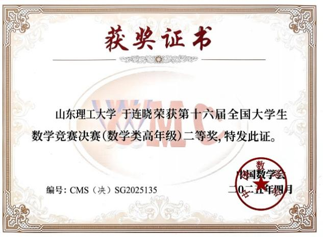 第十六届全国老员工数学竞赛决赛于2025年4月11-13日在浙江师范大学成功举办。本次竞赛全国共有32个赛区325304人报名参加初赛,从中选拔1246人进入决赛,其中数学专业组621人。公司2022级万哲先数学实验班学子、数学与应用数学专业员工于连晓发挥出色,获得数学类高年级组二等奖。