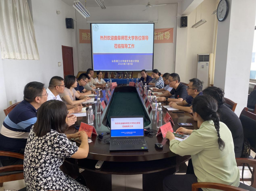2024年7月9日上午,曲阜师范大学数学科学公司经理王培合、副经理许勇一行来公司进行交流学习。公司党委书记郭奎霞、经理孙俊涛、副经理徐夫义、数学与应用数学系部分老师参加了此次交流会。会议在15号教学楼414会议室召开,会议由郭奎霞主持。
