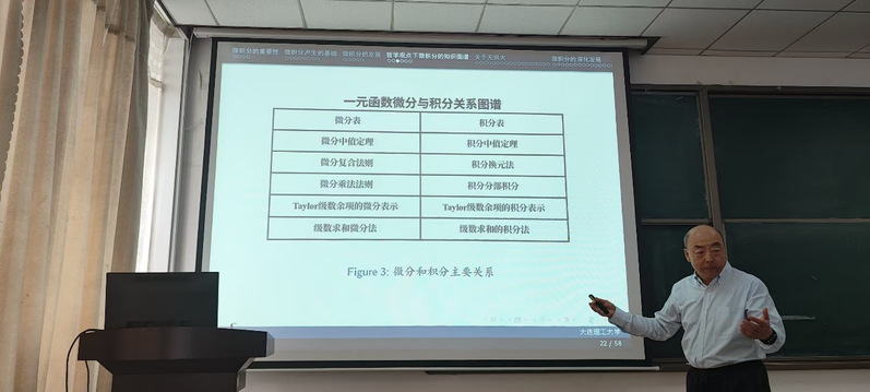 卢玉峰教授的报告以微积分建立、完善和进一步发展的过程为主线,品味微积分的“源”,揣摩微积分的“流”,阐释分析课程的知识图谱。