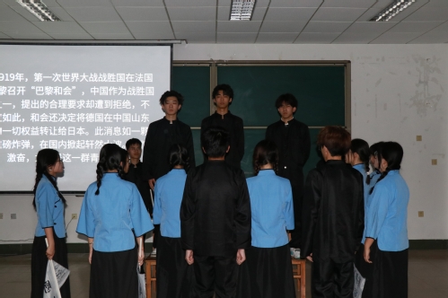 各班级团支部通过视频形式展示了支部建设成果,涵盖组织生活、志愿服务、学风建设等内容,充分体现了青年团员的良好精神风貌。在风采展示环节,各团支部创新形式,通过《我骄傲,我是中国人》诗朗诵、五四风云历史情景剧、《我和我的祖国》合唱等丰富多彩的节目,生动展现了新时代青年学子坚定的理想信念和深厚的家国情怀。