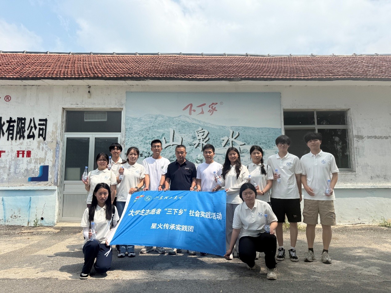 随后,实践团前往龙口市下丁家山泉水有限公司参观学习。在企业工作人员的带领下,团队成员深入生产车间,了解山泉水的采集、过滤、杀菌、灌装等全流程生产工艺,重点考察了企业采用的石英砂过滤、臭氧杀菌等环保工艺,并就水质监测、环保措施等问题与企业技术人员展开交流。通过实地学习,实践团成员不仅加深了对饮用水安全的认识,也对企业如何平衡生产与生态保护有了更深刻的理解。