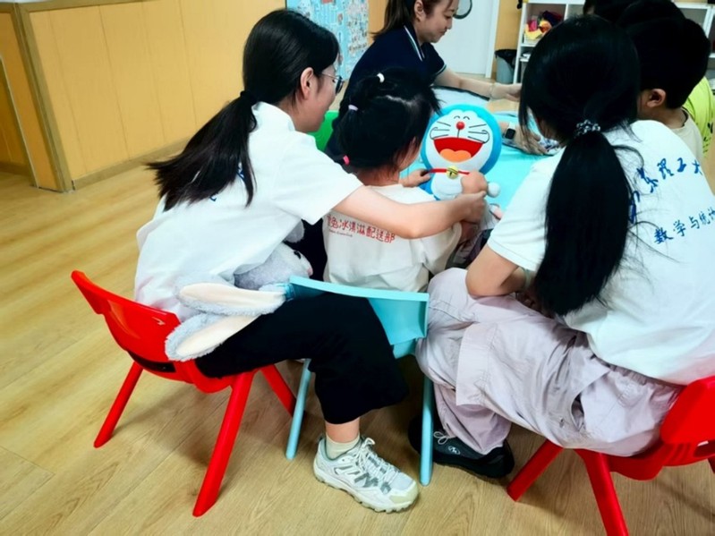 当天上午,实践团成员们早早到达公司,精心准备了丰富的互动活动和游戏。活动伊始,实践团成员们与孩子们围坐在一起,进行趣味认知小游戏和手工拼搭训练。在实践团成员的引导下,孩子们逐渐敞开心扉,积极地参与拼图、颜色识别等活动,与哥哥姐姐们进行互动,互动中充满了欢声笑语。