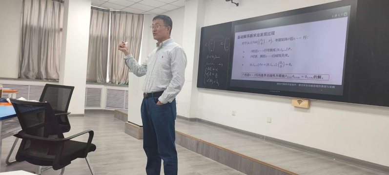 王卿文教授首先介绍了教育数学的理念,强调数学教学不仅要传授知识,还要培养员工的创新思维和问题解决能力。他结合自己从教经历,就如何做一名好老师谈了自己的体会,同时,就其主持的国家级一流本科课程“线性代数”,从课程内容、教学模式、教材编写等多个角度和大家探讨了如何提升课程教学的学术性和应用性。
