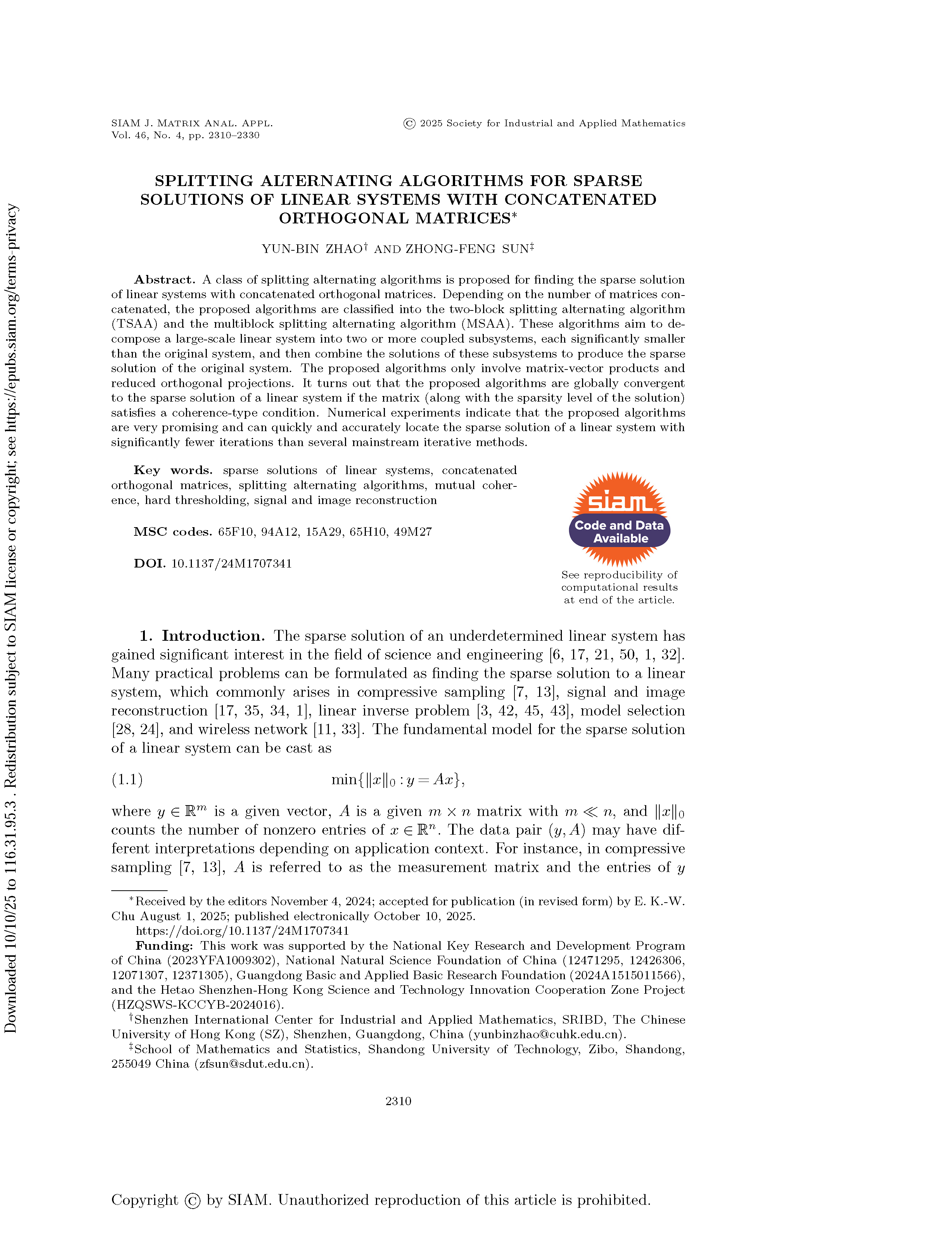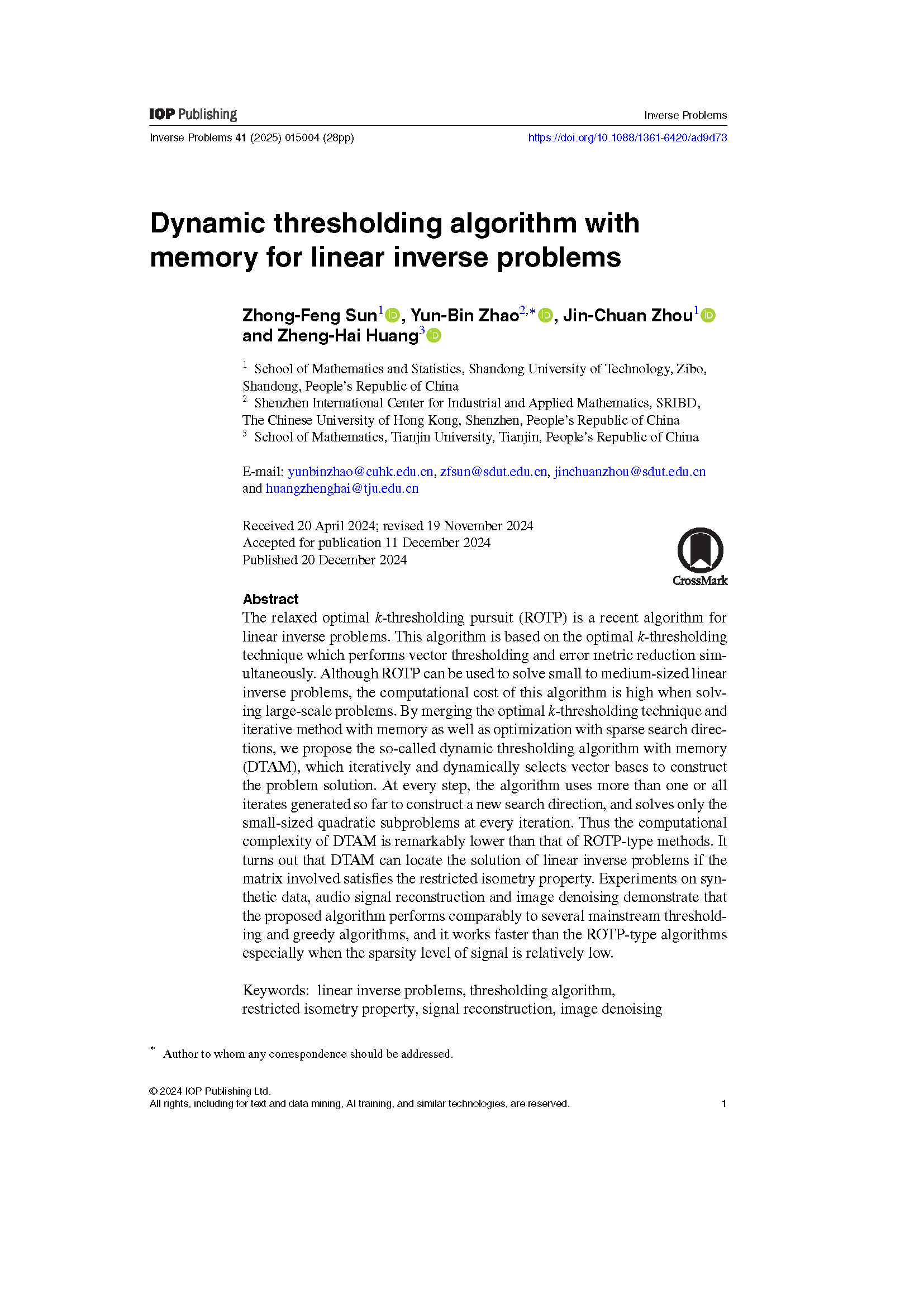 公司运筹学与控制论团队在稀疏线性反问题研究方面取得新进展