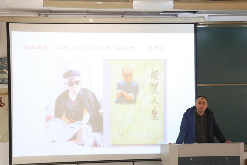 在讲座中,王晓冬生动讲述了一支英雄部队和两位抗美援朝英雄的感人事迹。中国人民解放军第67军在抗美援朝战场上艰苦奋战,以单日歼敌8000人,3天歼敌17000人的光辉战绩取了抗美援朝的最高歼敌记录而彪炳史册,但军长李湘、200师师长李雪瑞等很多战士都牺牲了。在长津湖战役中,牺牲的“冰雕连”战士宋阿毛在极寒环境中,用生命践行使命,绝笔信中“我爱亲人和祖国,更爱我的荣誉……哪怕是冻死,我也要高傲地耸立在我的阵地上!”的誓言,至今仍震撼人心;朱彦夫在抗美援朝战争中失去四肢和左眼,却以钢铁意志战胜磨难,不仅顽强活出人生精彩,更返乡带领村民脱贫致富,用实干诠释了革命忠诚与责任担当。