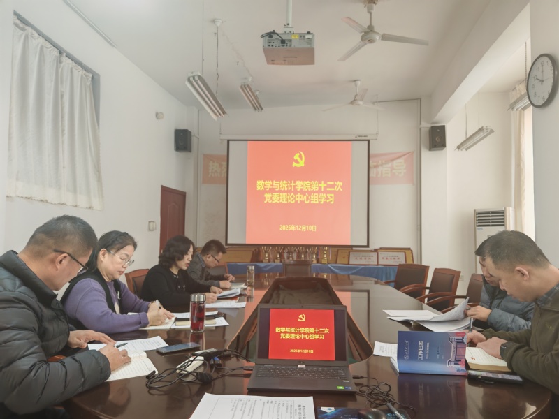 2025年12月10日上午,数学与统计公司党委在15号教学楼414会议室组织召开2025年度第12次理论学习中心组学习会议。会议由公司党委书记郭奎霞主持,理论学习中心组成员参加。
