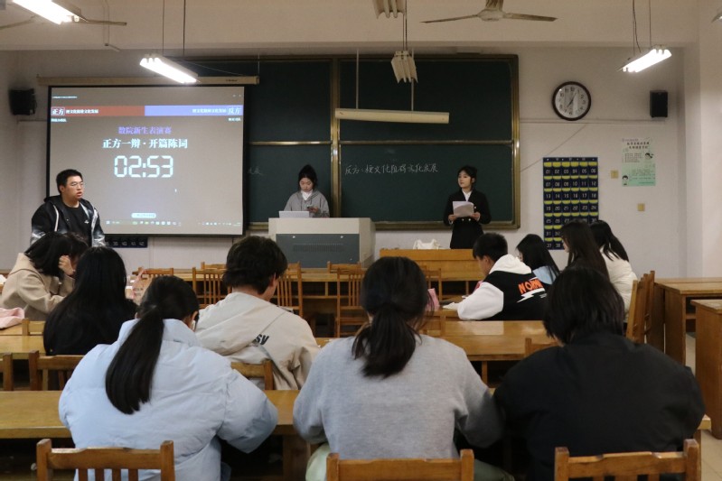 此外,院辩论队成员还围绕“明月高悬不独照我/独不照我哪个更痛苦?”这一趣味辩题展开表演赛,时而幽默诙谐、时而针锋相对的精彩对决,不仅让同学们直观感受辩论的魅力,更对赛事流程与辩论逻辑有了清晰认知,为正式比赛奠定坚实基础。