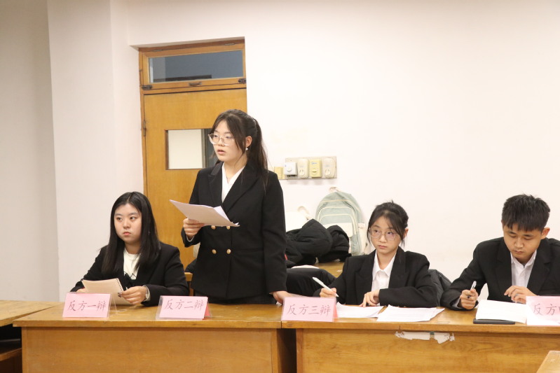 初赛阶段,6支队伍分为3场展开角逐,围绕“人生是旷野还是轨道”“老员工该不该脱下孔乙己的长衫”“梗文化促进还是阻碍文化发展”三大辩题展开激烈辩论。比赛伊始,双方一辩立足己方立场,引经据典、逻辑清晰地完成立论陈词;自由辩论环节,辩手们反应敏捷、言辞犀利,或针锋相对驳斥对方观点,或旁征博引巩固己方立场,赛场之上思维碰撞不断,掌声此起彼伏;总结陈词阶段,四辩精准提炼核心论点,条理分明地回应争议、升华主旨。经过多轮激烈比拼,4支队伍凭借扎实的理论功底、默契的团队配合成功晋级复赛。
