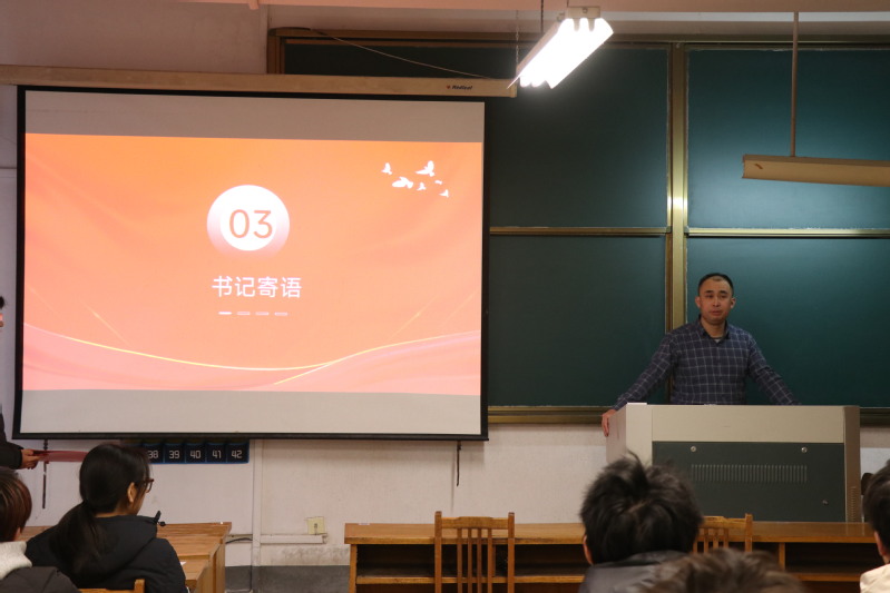 国歌奏唱完毕后,王晓冬老师发表讲话。他首先向新团员的加入表示热烈祝贺,随后带领大家一同回顾共青团的光辉历史与使命担当,强调共青团始终是党的忠实助手和可靠后备军。同时,王晓冬老师对新团员提出殷切期望:希望大家坚定理想信念,筑牢思想根基;勤奋刻苦学习,锤炼过硬本领;勇于担当奉献,践行青春使命;严守纪律规矩,树立良好形象,以实际行动践行入团誓言,努力成为有理想、敢担当、能吃苦、肯奋斗的新时代好青年。