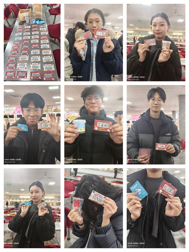 “恭喜这位同学!”随着一个个中奖同学的出现,欢呼声此起彼伏。从暖心的实用好物到精美的文创礼品,中奖的同学们脸上洋溢着灿烂的笑容,纷纷表示这是冬至收到的最好礼物。未中奖的同学也在一旁鼓掌喝彩,现场沉浸在一片欢乐祥和的氛围中。