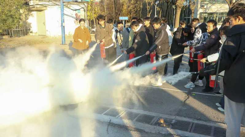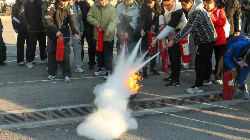 实战演练环节中,模拟火灾场景突发,现场烟雾弥漫。在工作人员的统一指挥下,参与人员迅速反应,按照预定疏散路线,弯腰低姿、捂住口鼻,快速有序地撤离至指定安全区域,整个疏散过程紧张有序、规范高效。随后,工作人员现场示范了灭火器“提、拔、握、压”的操作步骤和消防栓的使用流程,邀请参与师生逐一上前实操演练,确保每位参与者都能熟练掌握消防器材的使用方法。